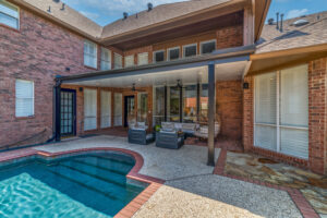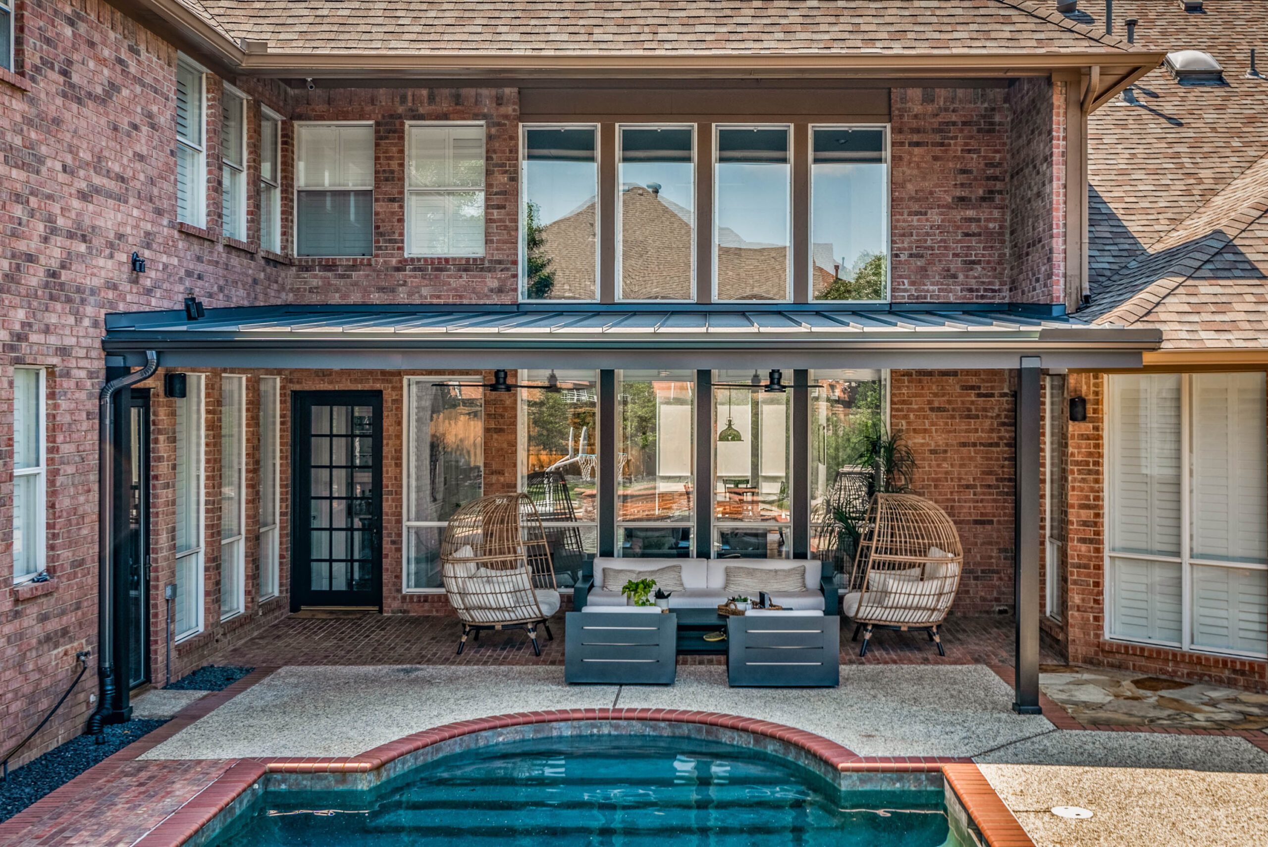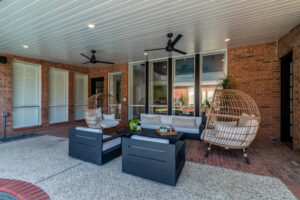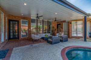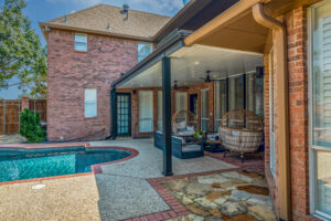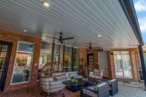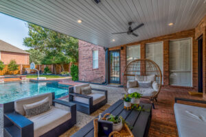 The clients simply needed more covered space and didn’t know what to do with their 20’ existing patio ceiling.  It didn’t provide much shade or cover from the sun or rain and they weren’t enjoying their backyard outside of the summer months when the pool was open.