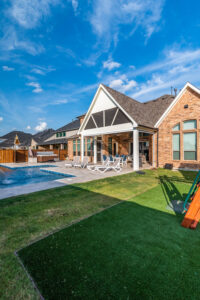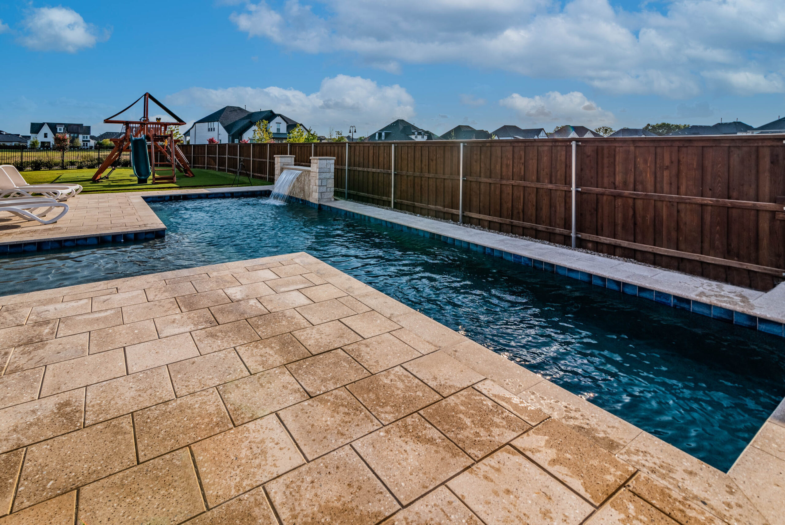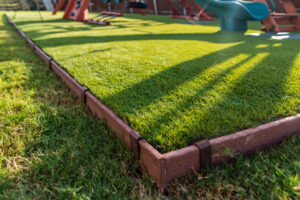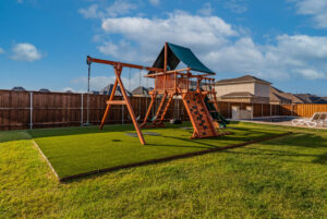 Additionally we installed an artificial turf area and the owners had a playset installed for the kids to enjoy.