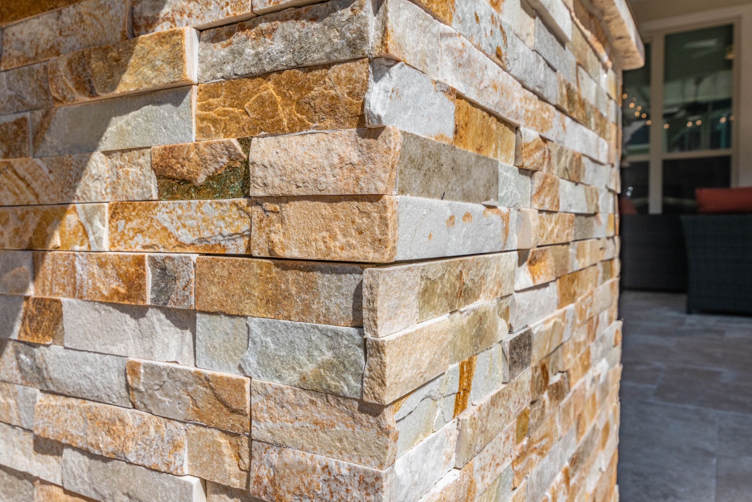 City build lines limited us from installing a patio cover here, but we were still able to build a pergola that fit our clients’ style. We finished the cedar with a more modern paint look. For the flooring finish, we went with a walnut travertine paver in French pattern. The stone on the cooking area is a stacked stone panel with a granite countertop.
