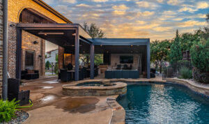 These homeowners had an existing pool and pergola and wanted to build something that felt more in line with a resort-style layout.